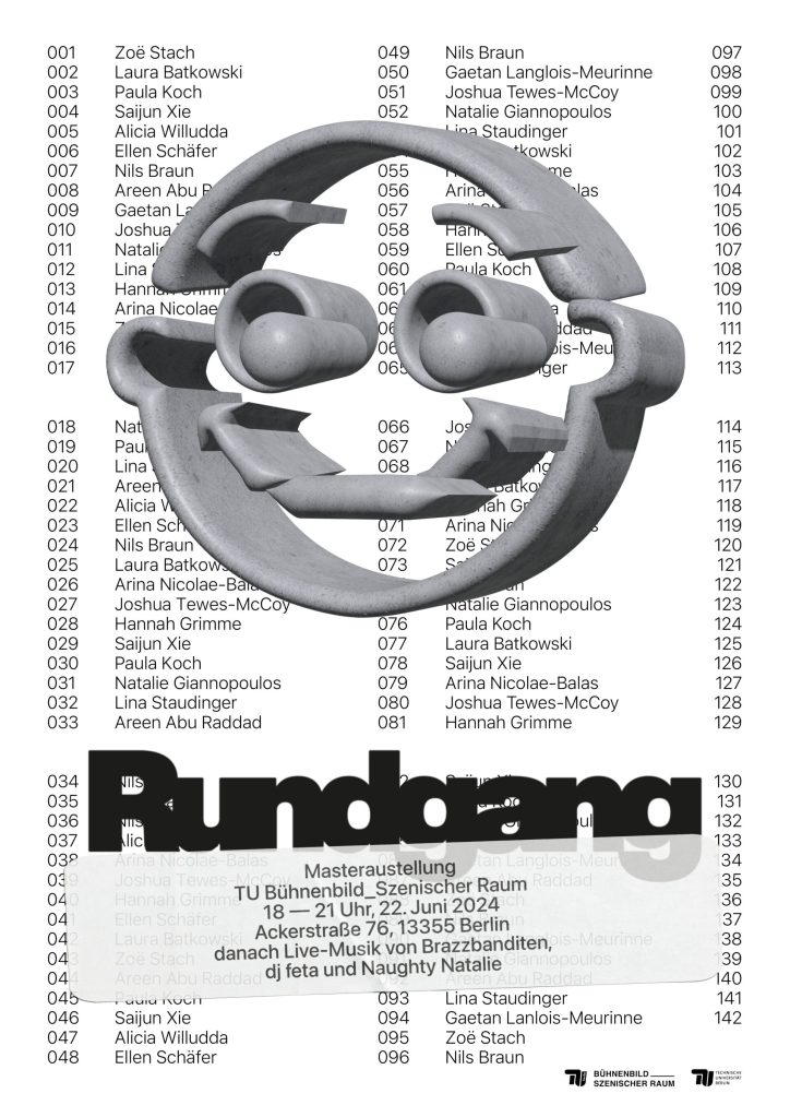Supervisors Johanna Pfau and Ludger Jansen, Principal Prof. Kerstin Laube, MA Stage design and scenic space, fourth semester, TU Berlin